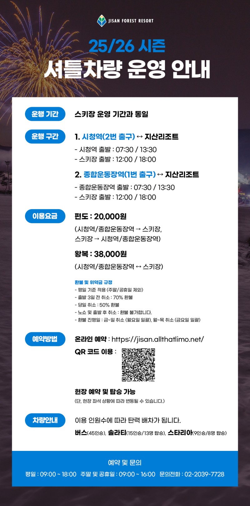 지산리조트 25/26시즌 셔틀차량 운영 안내